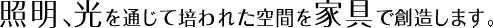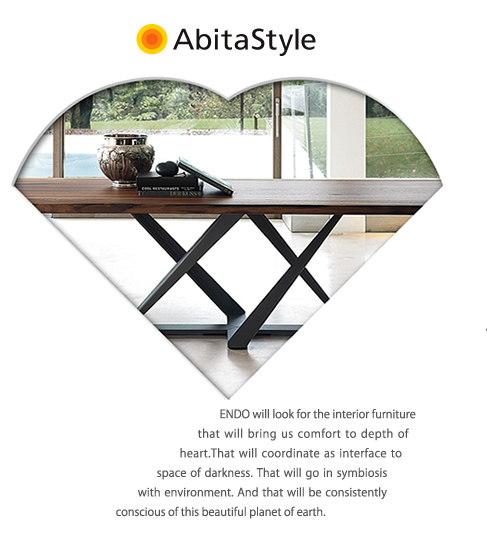 遠藤照明は、「光」を通じてさまざまな空間を創造してきました。 その中での経験や現場で学んだノウハウを「家具」を媒体として、インテリア空間への提案および表現に結び付けたいと考えています。これが、AbitaStyleの出発点であり原点です。 世界中の卓越した技術、長い歴史に裏打ちされたリラクゼーションのための構造、素材が深く吟味考慮され たデザイン等、これらのコンセプトを厳しい選択眼で検証し、スピードを高めてデザイン制作に関わっていくこ とこそが重要であると考えています。その空間を考えるとき、誰もが描く「印象に残ったイメージ」、その研ぎ澄まされた感性により近づけるように。 また、それをより具現化することが大切であると考えています。