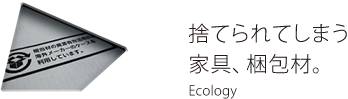 もう一つは、梱包材(主にダンボール)の再利用を実施しています。家具を梱包するダンボールはかなりの量を消費します。また殆どの場合、納品後その役目を終えることが多く、AbitaStyleでは資源有効活用のために海外ケースの再利用を推進しています。再利用することで、1年間に削減されるダンボールは24トン超にもなり、これを杉の木に換算した場合、約190本、CO2排出量換算では約2.6トンの排出削減になっています。尚、配送時における荷扱い、衝撃緩和、容量等も考慮して対応しています。